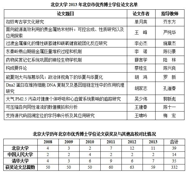 北京大学11篇论文被评为2013年北京市优秀博士学位论文